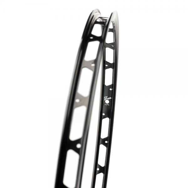 sehr leichte Vorderrad-Felge aus robustem 6061 Aluminium. Große Aussparungen und versetzte Speichenlöcher für geringes Gewicht bei hoher Steifigkeit. Hohe, geschliffene Flanken bieten optimale Bedingungen für Felgenbremsen. Auch für Scheibenbremsen geeignet. Hohe Verwindungssteifigkeit. Lochzahl 28 Loch. ERD 546mm. Gewicht 494g. Farbe: schwarz.