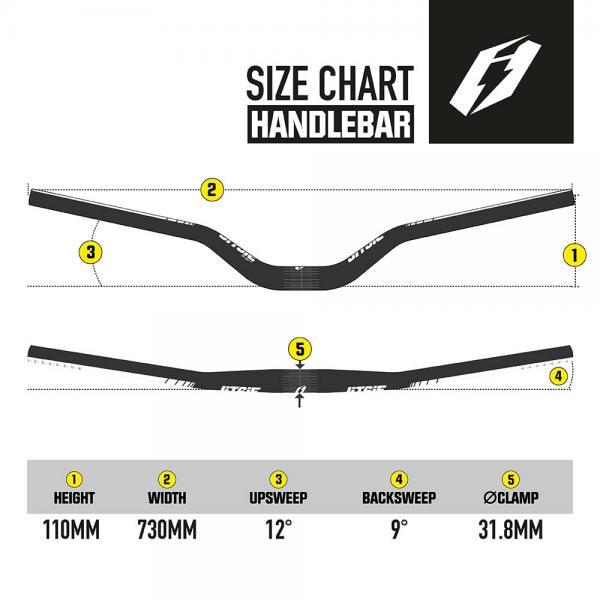 leichter Aluminium 7075 Lenker mit 110mm Erhöhung und mittlerer Kröpfung. Unterschiedliche Wandstärken für hohe Stabilität bei geringem Gewicht. Skala zum einfachen und exakten Kürzen.