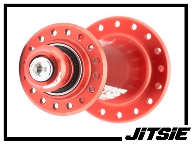 sehr leichte und hochwertige HR-Nabe mit minimalem, gewichtsoptimiertem Design. Entwickelt und produziert in Belgien als Teil der Jitsie Race Komponentenreihe. Aluminiumachse mit soliden Stahl Achsschrauben. Gedichtete Industrielager für hohe Zuverlässigkeit. Lochzahl 32. Ausgelegt auf die Verwendung von 3mm Kettenspannern. Gewicht 116gr. inkl. Achsschrauben. Gewicht ohne Schrauben 100gr. Farbe rot.