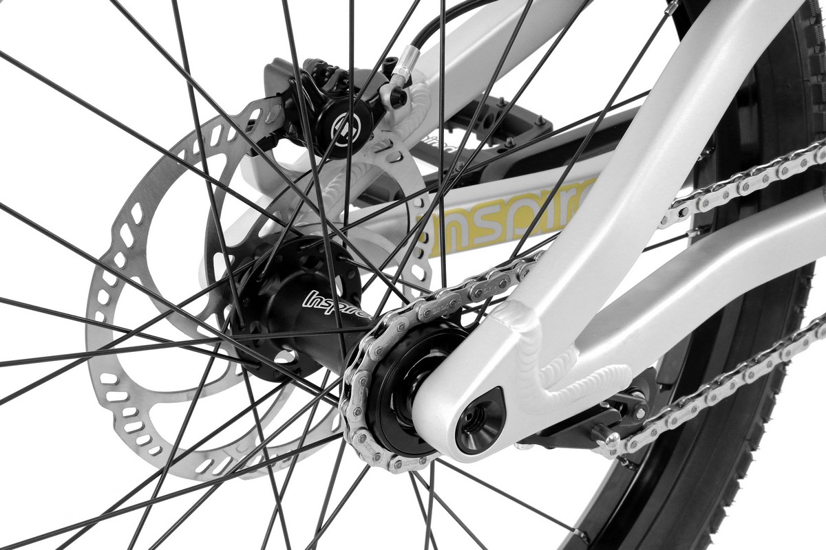 Das Link ist die kleinere 22" Version des bewährte Inspired Fourplay und besitzt die gleichen Spezifikationen: Tapered 1.5" Steuerrohr für mehr Steifigkeit und Lenkpräzision in Verbindung mit einer 15mm Steckachse am Vorderrad. Der 4-Kant Hinterbau besitzt eine 12mm Steckachse und eine integrierte Befestigung des Kettenspanners. Zudem überzeugen die modernen Postmount Scheibenbremsenaufnahmen an Gabel und Hinterbau. Bei der Ausstattung runden Hohlkammer Felgen, MacAskill Griffe und der solide Kevlar Sattel das sehr wendige Allroundbike ab. Wartungsfreie, hydraulische Scheibenbremsen mit Top Bremsleistung und optimaler Einstellbarkeit. Der wendige 22" Inspired Rahmen ist speziell für kleinere Fahrer angepasst und bietet eine optimale Kontrolle. Sehr solide Ausstattung mit Inspired Naben und neuem Inspired Pro Lenker. Singlespeed mit Freilaufritzel hinten und 22:16 Zähne Übersetzung. Inspired Pro Kurbeleinheit mit integriertem Rock Ring und durchgehender Hohlachse.