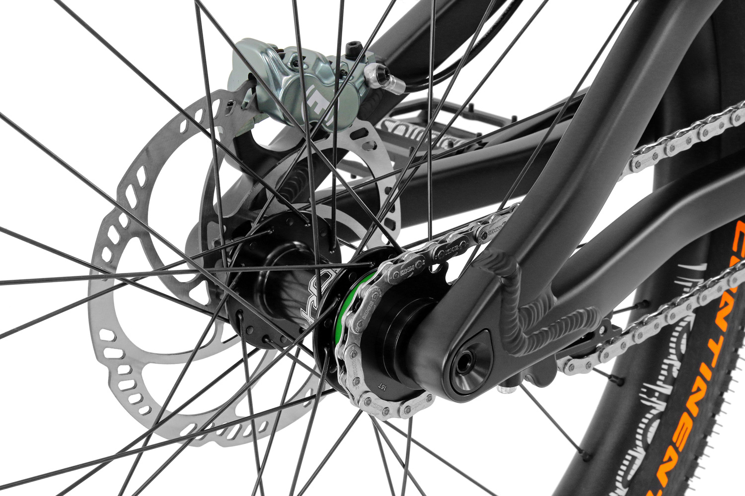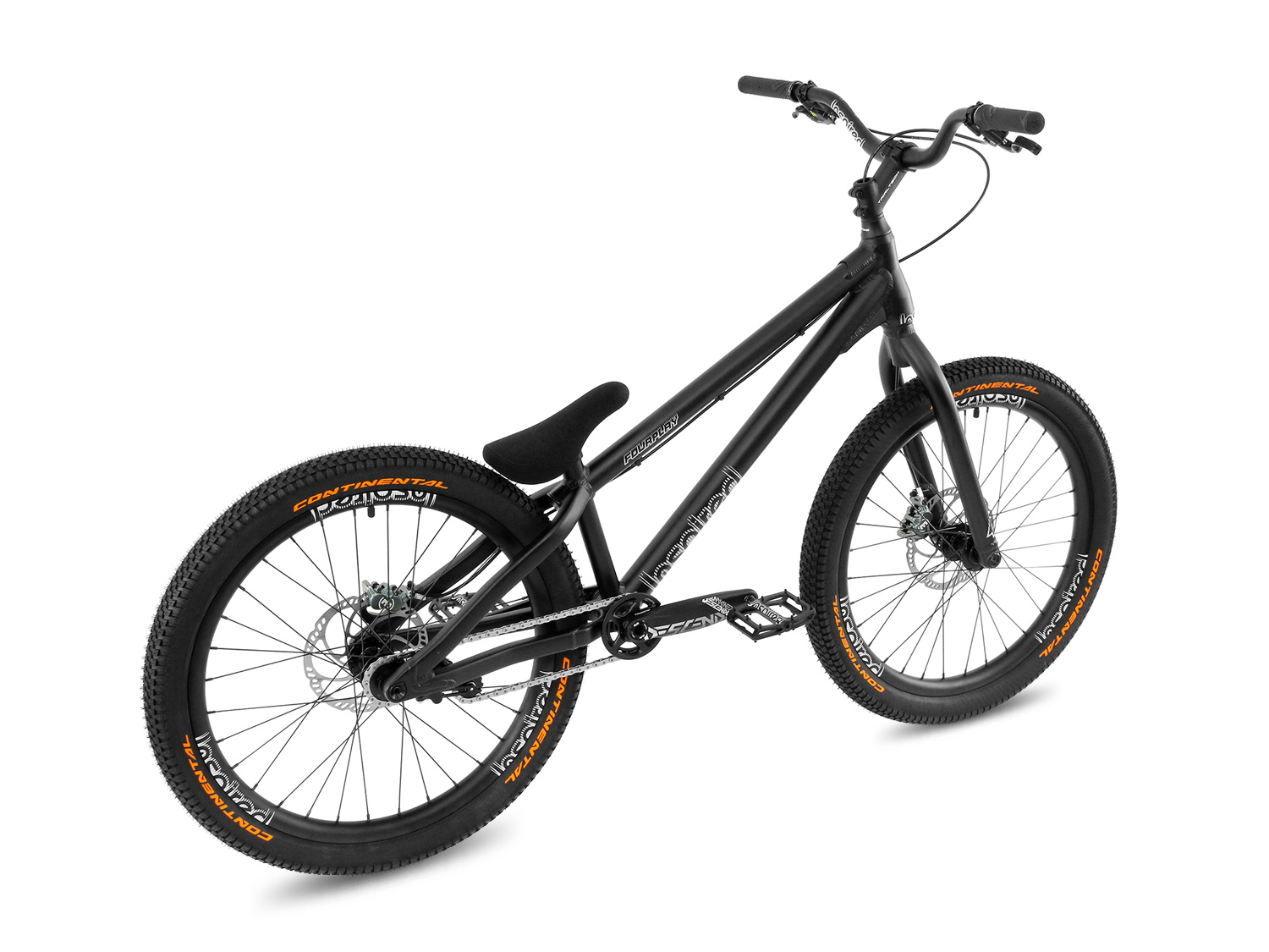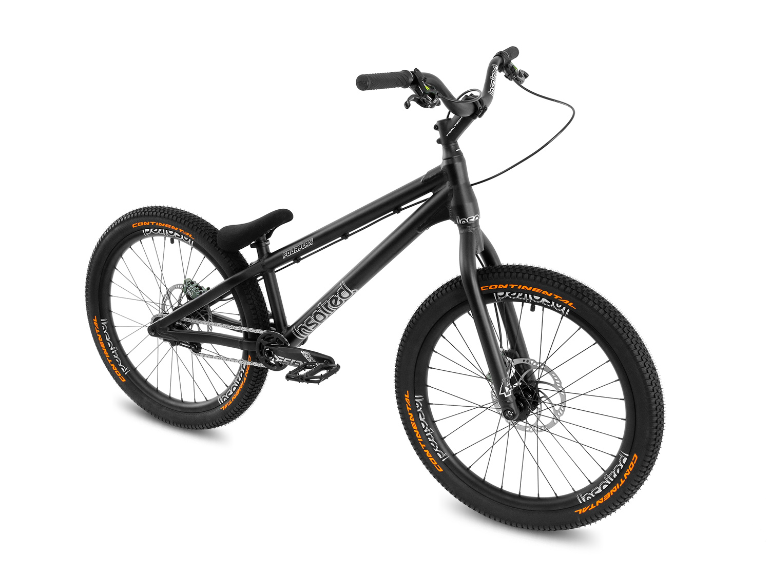 Das beliebte und bewährte Inspired Fourplay in der edlen Team Version kommt mit einer leicht geänderten Geometrie für noch mehr Wendigkeit. Zudem wurde das tapered Steuerrohr überarbeitet und besitzt nun komplett innenliegende Lager. Auch der neue Kettenspanner hält die Kette noch sicherer und fügt sich harmonisch unter der Kettenstrebe ein. Hope Naben, Inspired Team "tubeless ready" Felgen und Continental Bereifung. Für hohe Steifigkeit und Lenkpräzision sorgt eine 15mm Steckachse am Vorderrad. Der 4-Kant Hinterbau besitzt eine 12mm Steckachse und die modernen Postmount Scheibenbremsenaufnahmen. Bei der Ausstattung runden MacAskill Schraubgriffe, Inspired Pedale und der robuste Kevlar Sattel mit Tripod Aufnahme das sehr wendige Allroundbike ab. Wartungsfreie, hydraulische Scheibenbremsen mit Top Bremsleistung und optimaler Einstellbarkeit. Der wendige 24" Inspired Rahmen wurde für Streetfahrer angepasst mit kurzen Kettenstreben und höherem Tretlager bei kurzem Radstand. Singlespeed mit Freilaufnabe hinten und 22:16 Zähne Übersetzung.